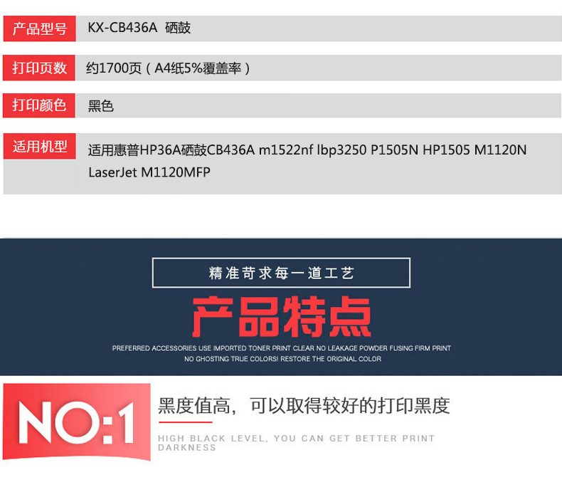 凱欣標(biāo)準(zhǔn)版 KX-CB436A粉盒 適用惠普HP36A硒鼓CB436A m1522nf墨盒佳能lbp3250 P1505N HP1505打印機M1120N LaserJet M1120 全國統(tǒng)一價:130元