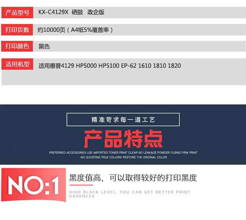 凱欣KX-C4129X 適用惠普4129 HP5000 HP5100硒鼓佳能EP-62 1610 1810 1820 全國統(tǒng)一價:345元