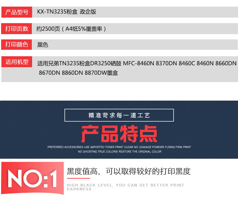 凱欣KX-TN3235 適用 兄弟TN3235粉盒 MFC-8460N 8370DN 8460C 8460N 8660DN 8670DN 8870DW粉盒 全國統(tǒng)一價:218元
