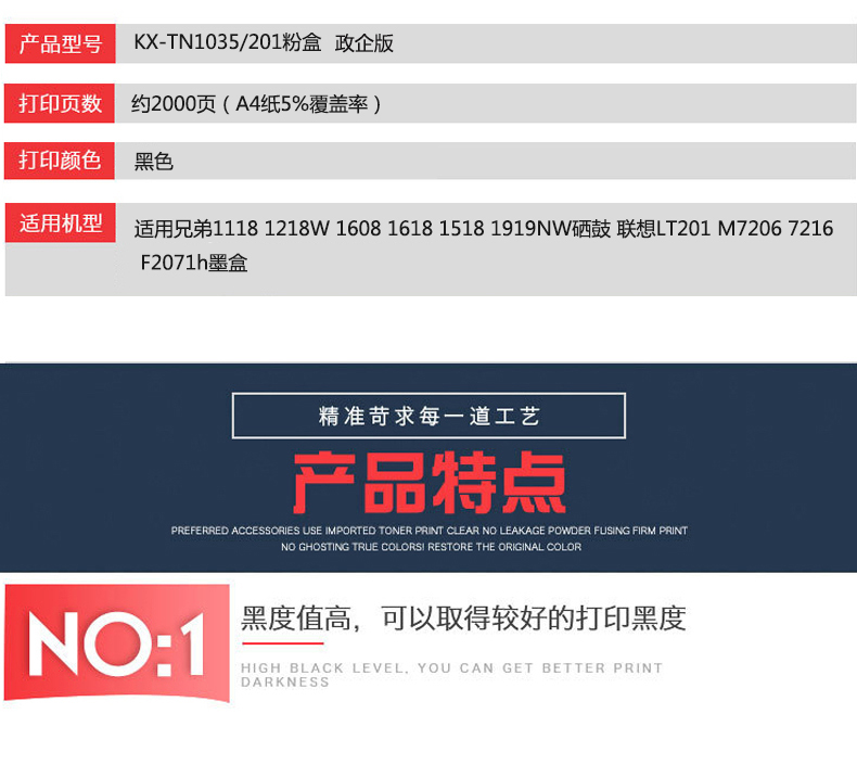 凱欣KX-TN1035/201 KX-1035/201粉盒適用兄弟1118 1218W 1608 1618 1518 1919NW硒鼓 聯(lián)想LT201 M7206 全國統(tǒng)一價(jià):169元