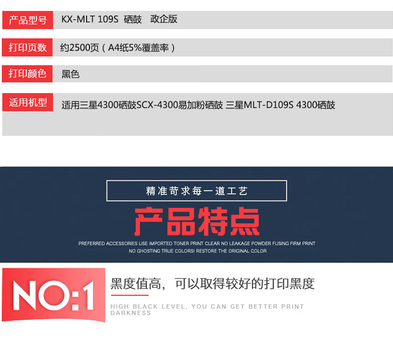 凱欣KX-MLT 109S 適用三星4300硒鼓SCX-4300易加粉硒鼓 三星MLT-D109S 4300硒鼓 全國統(tǒng)一價:189元