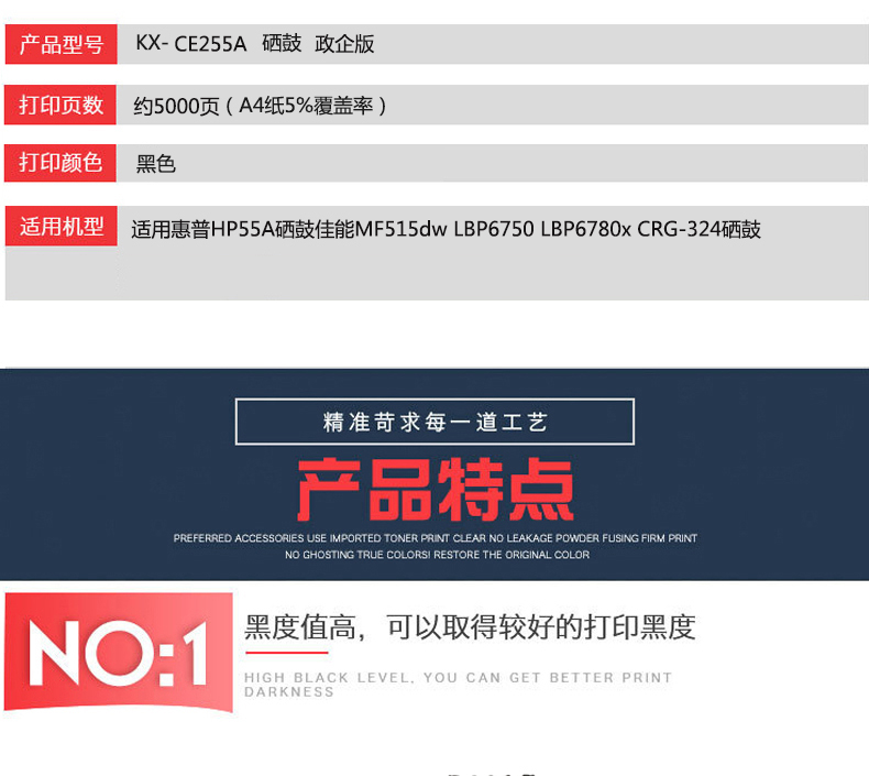 凱欣KX-CE255A 適用惠普HP55A硒鼓佳能MF515dw LBP6750 LBP6780x CRG-324硒鼓 全國統一價:236元