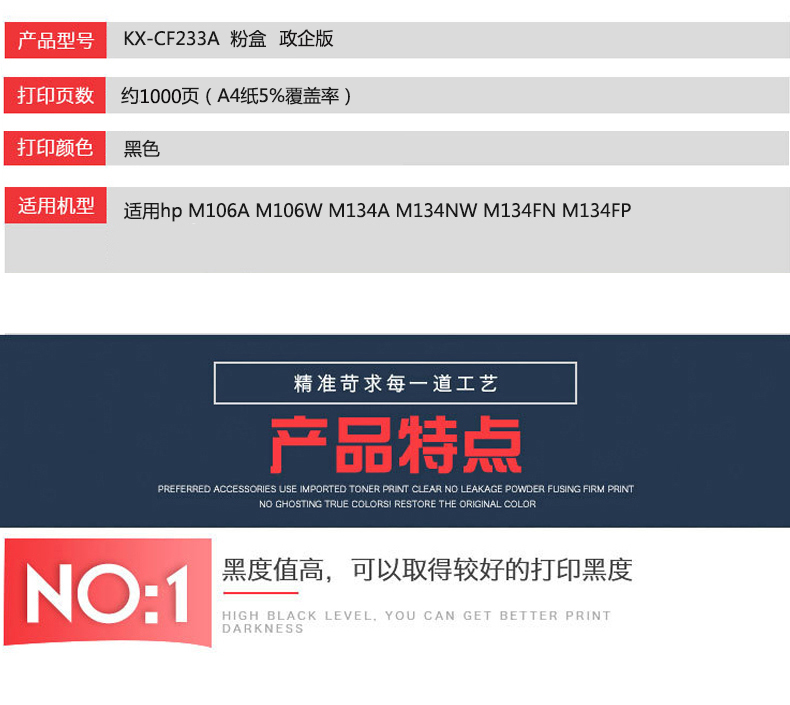 凱欣KX-CF233A 適用hp M106A M106W M134A M134NW M134FN M134FP 全國統(tǒng)一價:189元