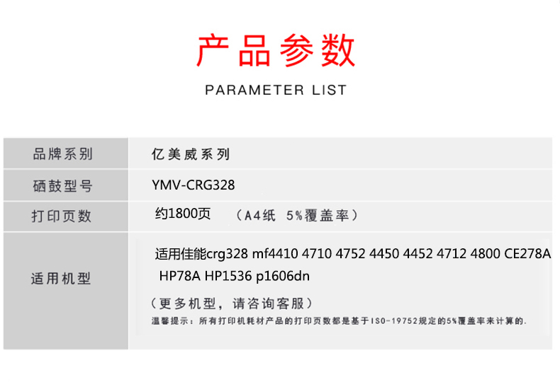 億美威 YMV-CRG328 適用佳能MF4410/4412/4420/4452/4572/4710 全國統(tǒng)一價(jià):178元