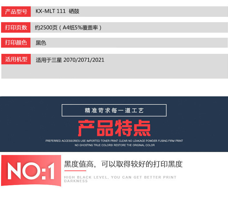 凱欣標準版 KX-MLT111粉盒 適用MLT-D111S M2070 M2021 M2022 M2020碳粉墨盒M2021W M2020W 全國統(tǒng)一價:146元