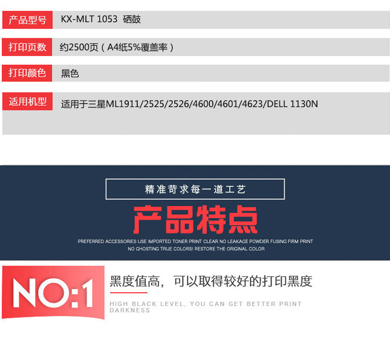凱欣標(biāo)準(zhǔn)版 KX-MLT1053粉盒 適用于三星 ML1911/2525/2526/4600/4601/4623/DELL 1130N 全國統(tǒng)一價(jià):160元