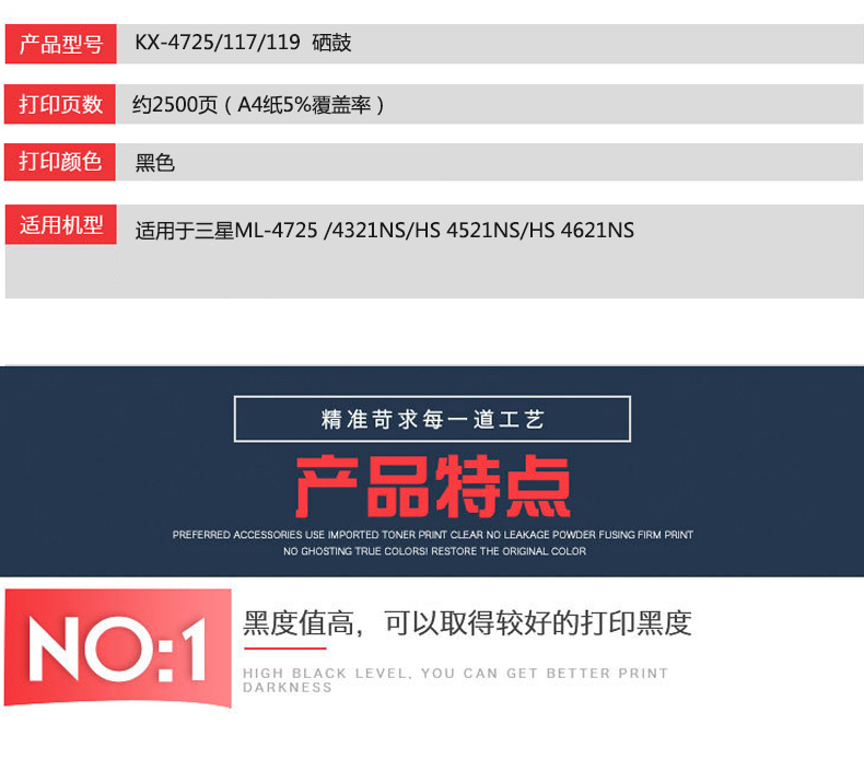 凱欣標準版 KX-SCX4725/117/119粉盒 適用于三星 ML-4725 /4321NS/HS 4521NS/HS 新款/4621NS 全國統(tǒng)一價:166元