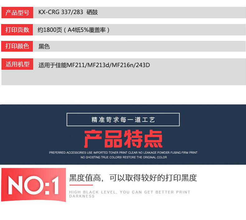 凱欣標(biāo)準(zhǔn)版 KX-CRG337/283粉盒 適用于佳能MF211/MF213d/MF216n/243D 全國(guó)統(tǒng)一價(jià):130元